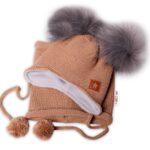 BABY NELLYS Zimná čiapka s fleecom a chlupáčka. bambuľky Star + komínok – medová, 98/104