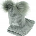 Baby Nellys: Zimná čiapka s komínom (sivé bambuľky)
