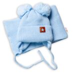 BABY NELLYS Zimná čiapka s šálom STAR – modrá s brmbolcami, veľ. 68/80