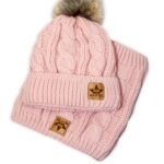 BABY NELLYS Zimná pletená čiapka s brmbolcom + komín, starorůžová, veľ. 104/116