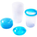 Potravinové obaly + Náustok zadarmo Kontajnery na materské mlieko, šťavy a iné potraviny. Sú určené na skladovanie a zmrazovanie jedla. Ďalšie veko s náustkom umožňuje priame podanie potravy dieťaťu. Pred prvým a po každom použití, dôkladne umyte teplou vodou a sterilizáciu. Nepoužívajte iné chemikálie. Kontajnery sú vyrobené zo špeciálneho materiálu určeného pre styk s potravinami, Neobsahuje bisfenol A. Balenie obsahuje: 4ks fľaštičiek, 4ks viečok, 1ks náustok.