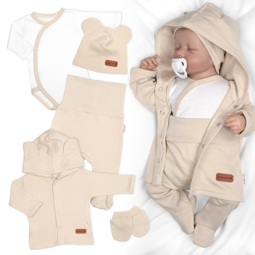 Bavlnená súprava pre bábätko do pôrodnice 5D, Made with love, béžová, veľ. 62