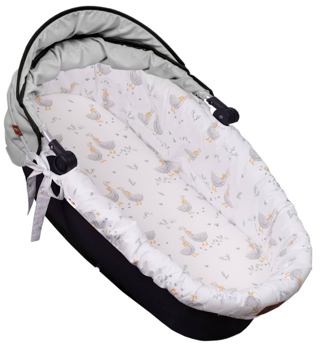 Bavlnená vložka do kočíkov/koše s penovým matracom, Husi, biela