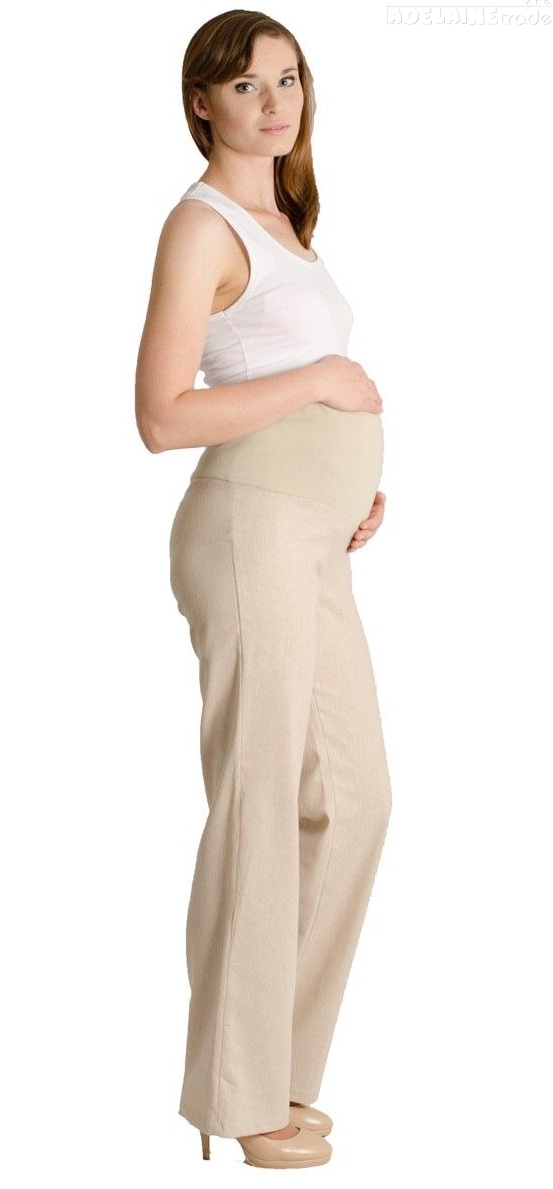Be MaaMaa Ľanové nohavice, rovné – letné – béžové