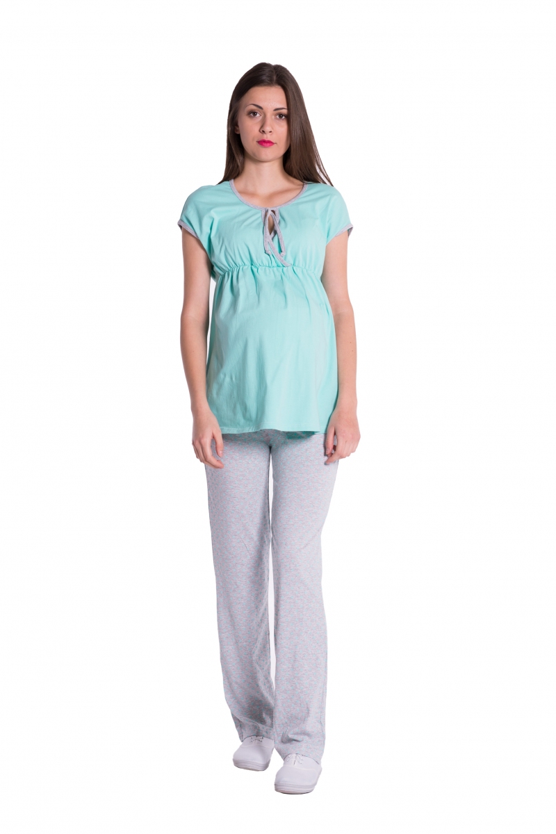 Be MaaMaa Tehotenské, dojčiace pyžamo – mátová/šedá, vel´. L