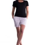 Sú ideálne v horných letných dňoch v každom mesiaci tehotenstva. Šortky majú vrecká na prednej i zadnej strane, v páse je šnúrka na prispôsobenie obvodu bruška. Pás je pružný, elastický – nikde netlačí.