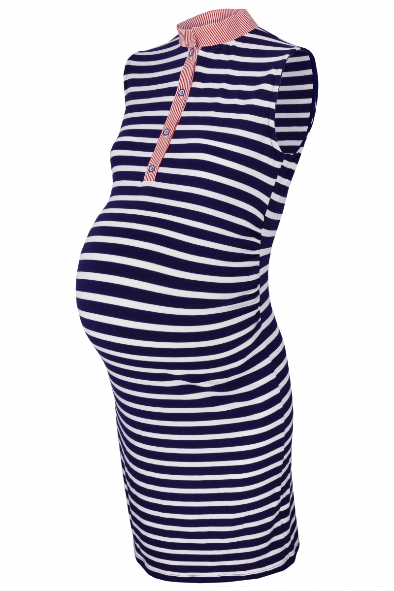 Tehotenské prúžkované šaty so stojačikom.
