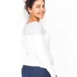 Be MaaMaa Tehotenské tričko / blúzka dlhý rukáv Anna, veľ. XL – bílé/sivý melír