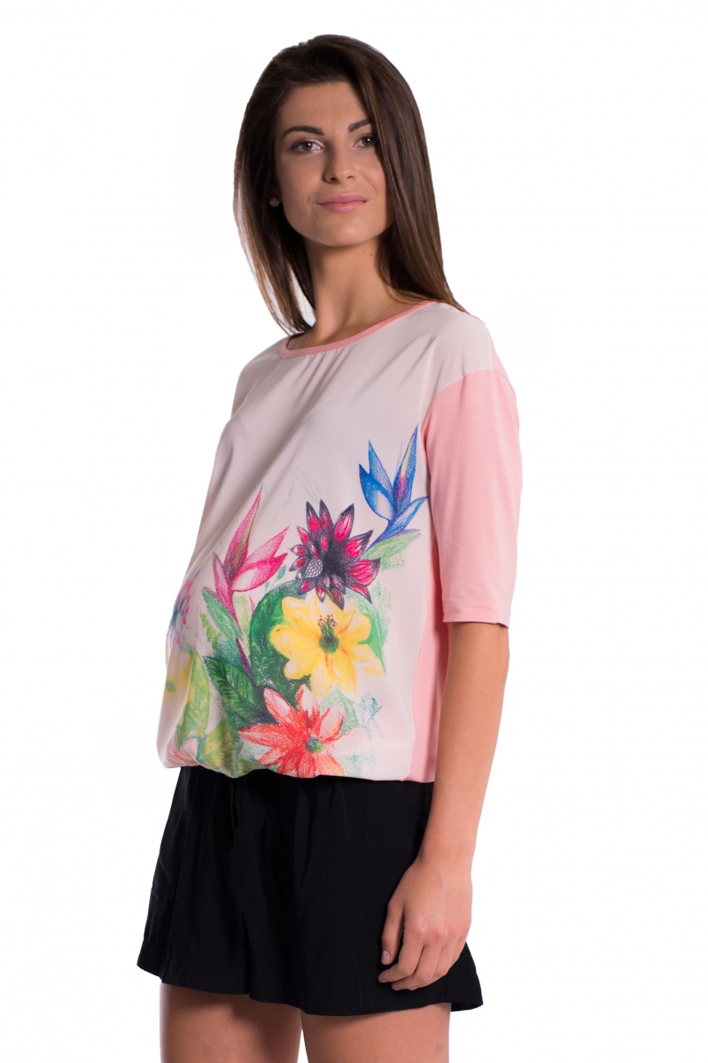 Be MaaMaa Tehotenské tričko/blúzka s potlačou kvetín – ružové, vel´. M