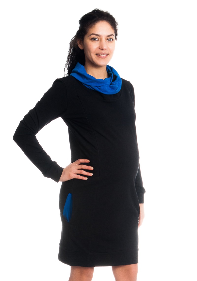 Be MaaMaa Teplákové tehotenské / dojčiace šaty Eline, dlhý rukáv – čierne, veľ. XL