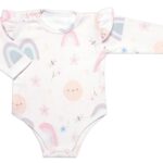 Body dl. rukáv s volánikom, bavlna, zapínanie pri krku Mrofi, Rainbow – biele veľ. 80