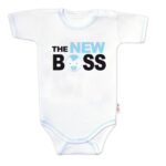 Body krátky rukáv s vtipným textom Baby Nellys, The New Boss, veľ. 80, chalan