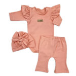 Body s volánikmi, legíny do zvonu a čiapočka, 3D, bavlna, marhuľová, veľ. 86