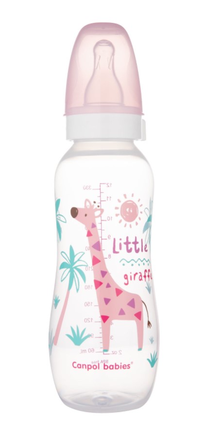 Canpol babies: Fľaša s potlačou Žirafka 250ml (ružová)