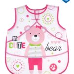 Mäkká plastová zásterka s veľkou praktickou kapsou, ktorá chráni oblečenie pred zašpinením.