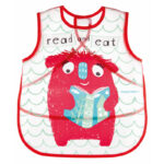 Mäkký plastový podbradník s veľkou praktickou kapsou, ktorá chráni oblečenie pred zašpinením.