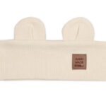Pletená čiapka s uškami na zaväzovanie Made with Love, bežový melírok, veľ. 80/86