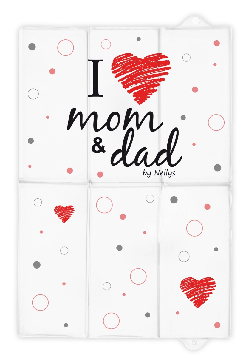 Cestovná prebaľovacia podložka, mäkká, I Love, Nellys, 60x40cm, biela/červená
