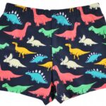 Chlapčenské plavky so zábavným letným dinosaurím vzorom. Vďaka sťahovaciemu pásu a regulácii pomocou šnúrky sa dajú individuálne prispôsobiť postave. Vnútri šortiek je vpredu všitý ďalší jemný materiál, ktorý zabraňuje oderom kože.