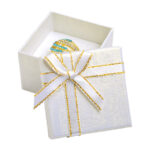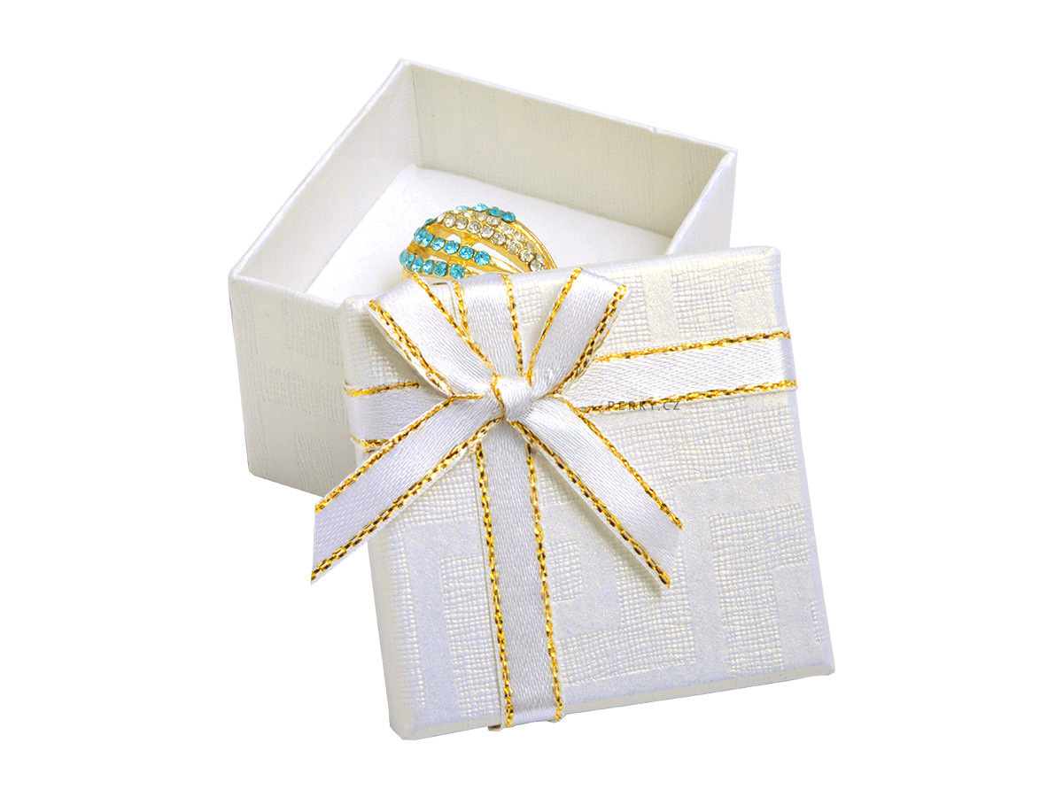 Darčeková krabička na šperky, biela so zlatou nitkou.