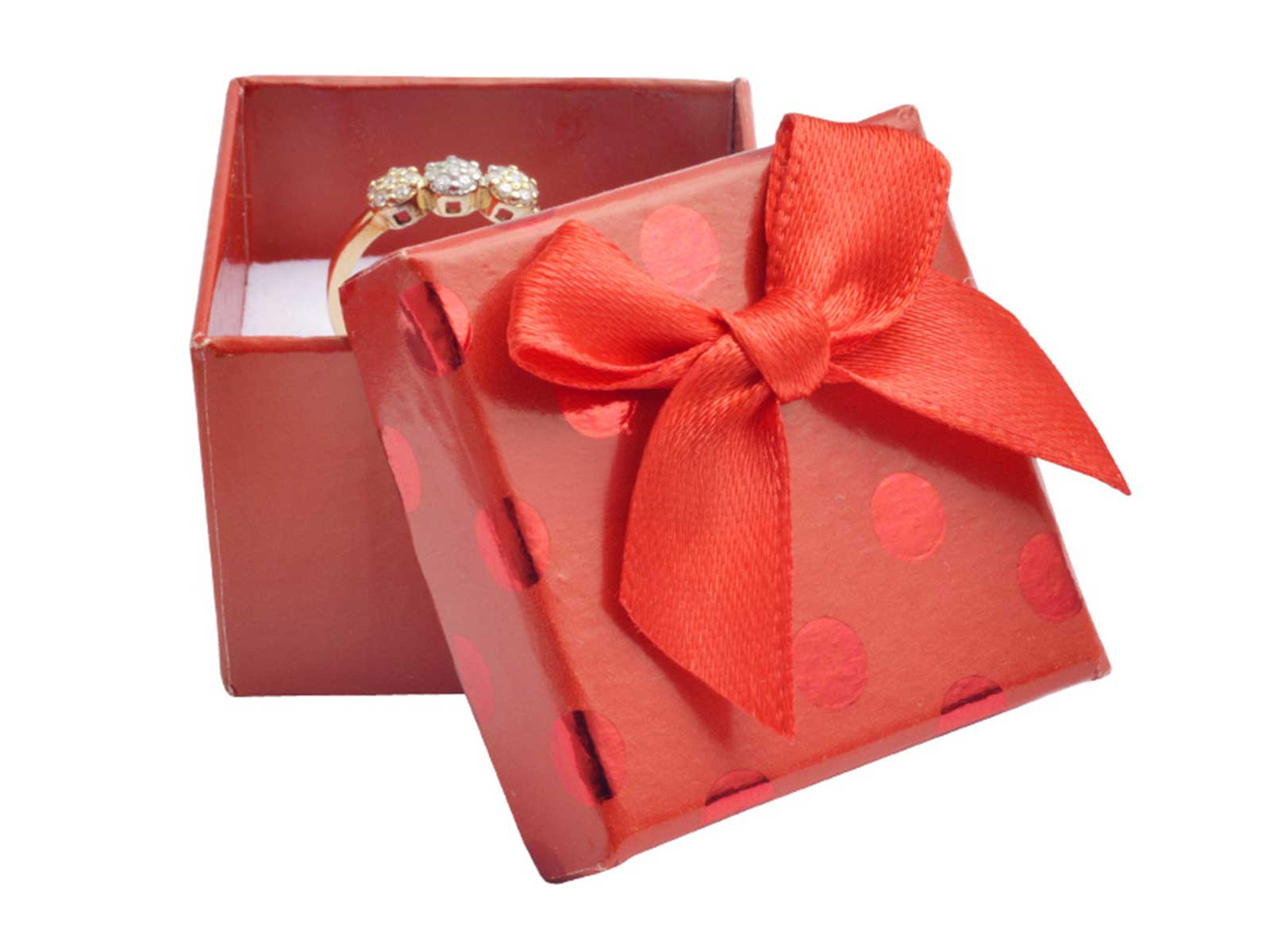 Darčeková krabička na šperky, červena s bodkami