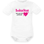 DEJNA Body krátký rukáv Láska na první pohled – biele, ružové srdiečko