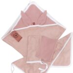Detská luxusná 4D bambusová sada – osuška s kapucňou a uterákom + 2 žinky, pudrovo ružová