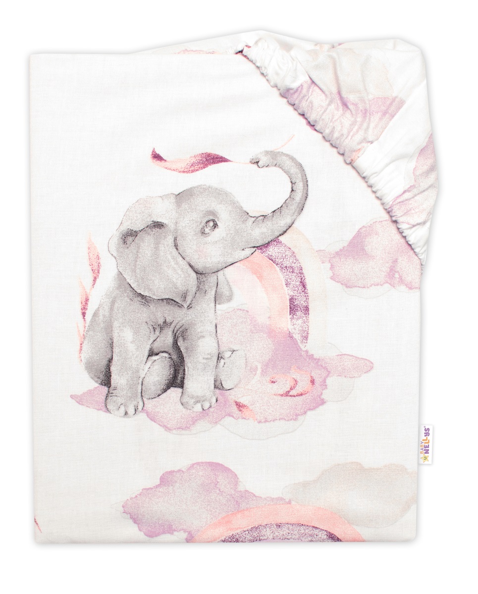 Detské bavlnené prestieradlo do postieľky, Slon a dúha, ružová/biela,140x70cm