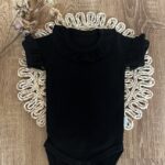 Detské body, kr. rukáv Mamatti, zap. pri krku, Baby Mouse – čierne s volánikmi, veľ. 98