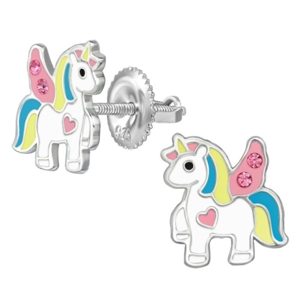 Detské strieborné náušničky s Jednorožec Angel, puzetové