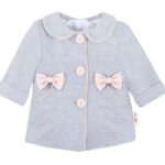 Detský bavlnený kabátik s mašličkami, sivý, veľ. 86