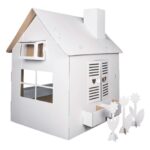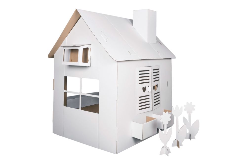Domček je vyrobený z 5-vrstiev bieleho vlnitého kartónu.