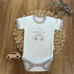 Dojčenské body, kr. rukáv Mamatti, zap. u krku, Dream Car – biele/šedý lem, veľ. 74