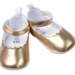 Topánky sú určené pre nechodiace deti napr. do kočíka. Hladký, lesklý a dekoratívne zakončený okraj, vďaka ktorému vyzerajú veľmi elegantne. Sú ideálne pre každú oslavu alebo fotenie.