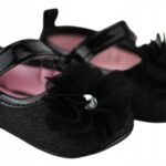 Dojčenské capáčky/topánočky s kvietkom, brokát/čierne, Baby Nellys