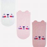 Dojčenské ponožky, 3 páry – Noviti – Mačička, biela/ružová/losos, veľ. 6-12 m