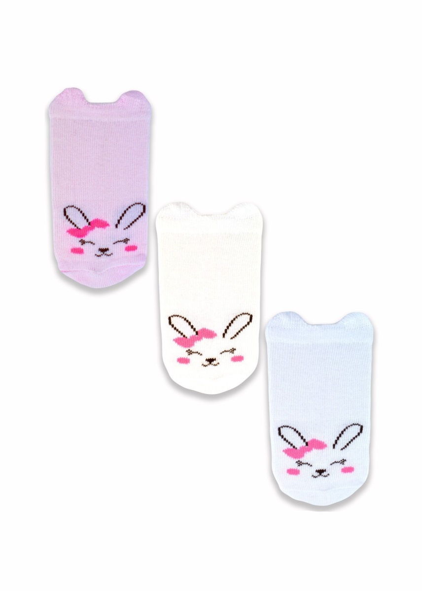Dojčenské ponožky, 3 páry, Zajačik, biela/ružová/ecru, veľ. 12-18 m