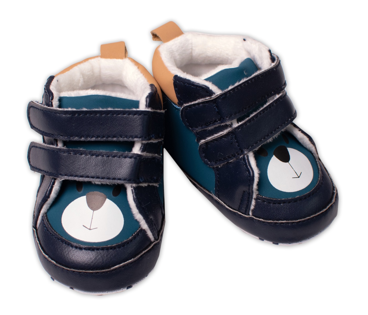 Dojčenské topánky/capáčky Medvedík YO!,s fleecom na suchý zips,petrolej/horčica