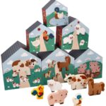 Domčeky/pyramídy so 6 drevenými zvieratkami, Farma