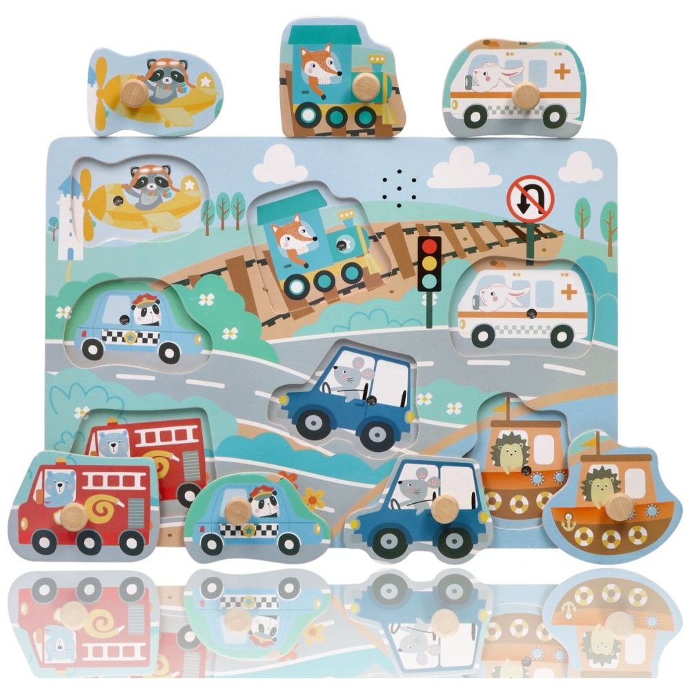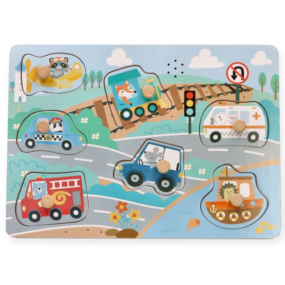 Drevená aktívna vkladačka so zvukmi, Dopravné prostriedky, prírodné
