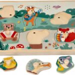 Drevená aktívna vkladačka so zvukmi, Lesné zvieratká, prírodné