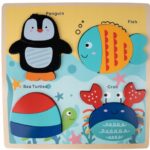 konkrétnych morských živočíchov. Súprava obsahuje drevené puzzle skladajúci sa z niekoľkých prvkov. Celá sranda spočíva v priraďovaní prvkov na správne miesto na doske.