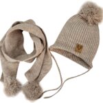 Dvojvrstvová zimná pletená čiapočka na zaväzovanie + šál s brmbolcami.