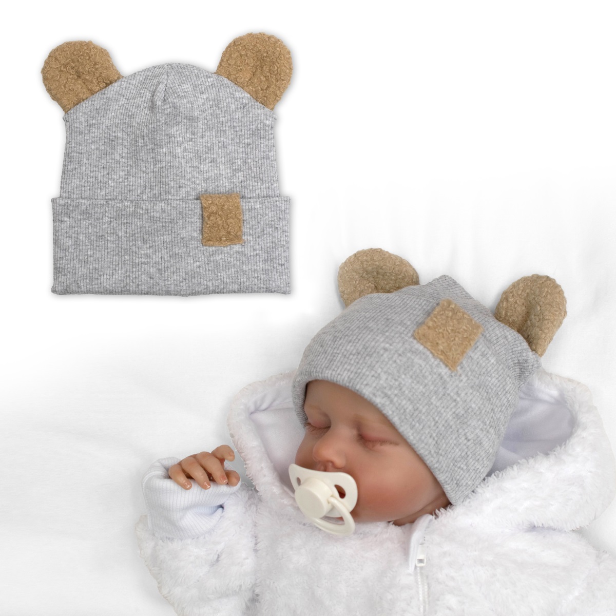 Dvojvrstvová rebrovaná čiapočka s uškami medvedík – Baby Nellys®.