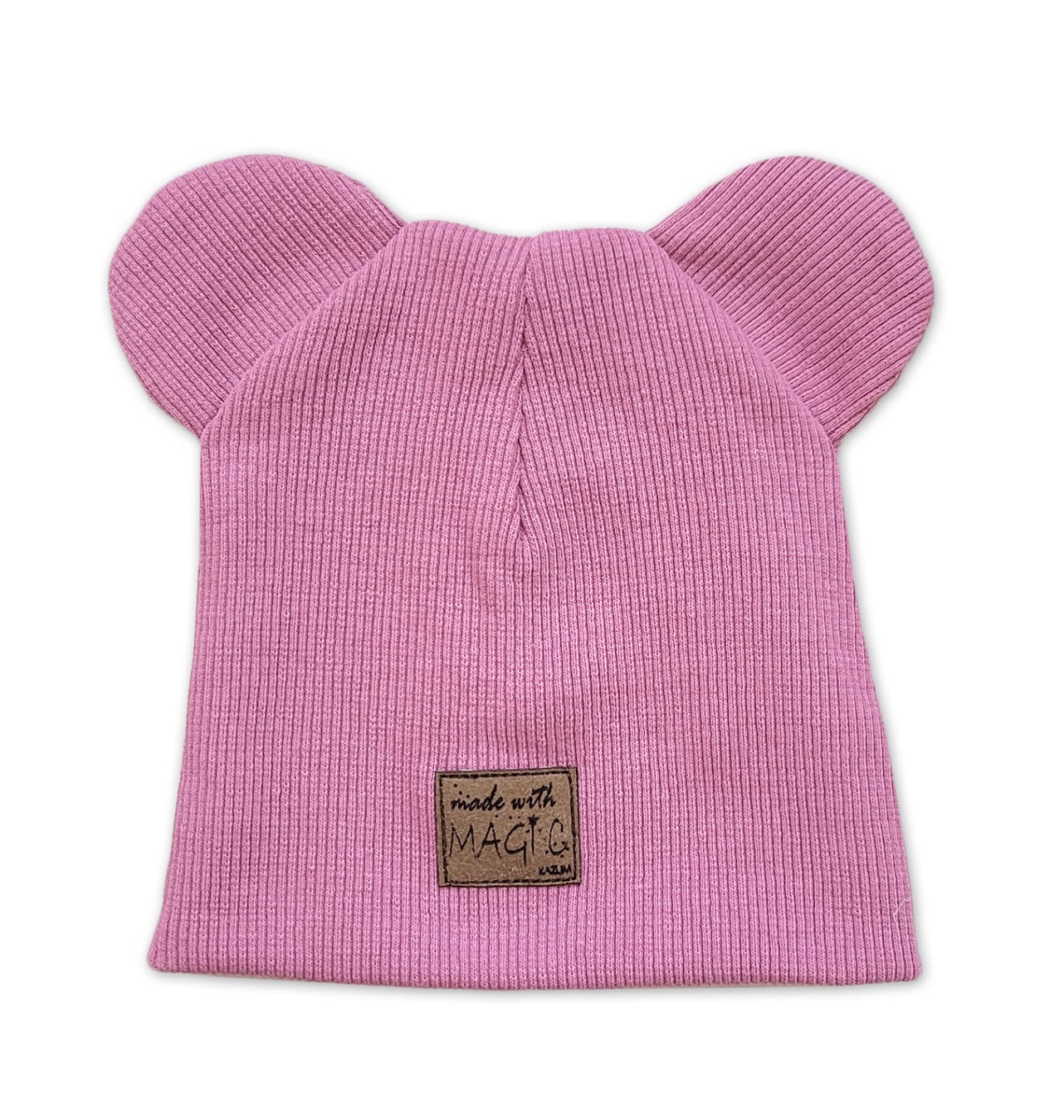 Dvojvrstvová rebrovaná čiapočka s uškami Magic – ružová