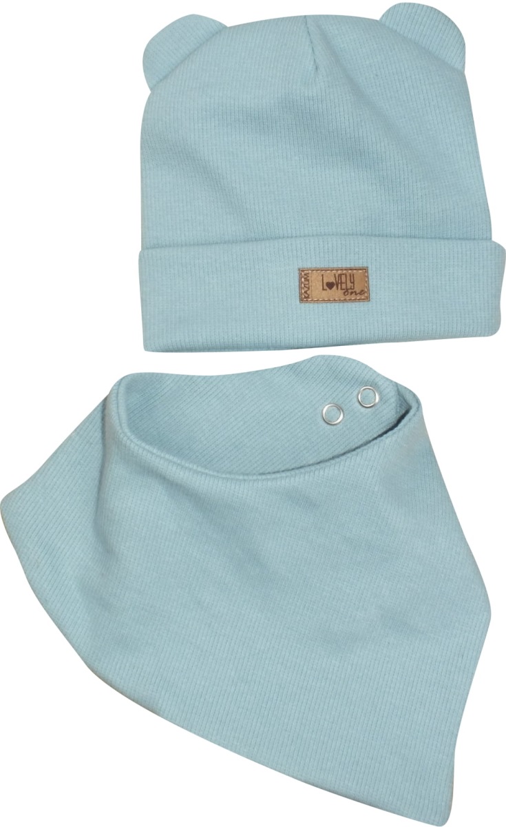 Dvojvrstvová rebrovaná čiapočka s uškami + šatka, Lovely One, morská modrá, veľ. 80/86