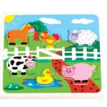 Puzzle je vyrobeno z přírodního dřeva, skládá se ze základny a 6 zvířátek.