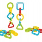 Spojením medzi sebou tvarmi vytvoríte farebný reťaz ľubovoľnej dĺžky. Reťaz možno použiť ako prívesok, napr. Na hračky alebo iné detské poklady. Dieťa navyše môže triediť položky podľa farby alebo tvaru.