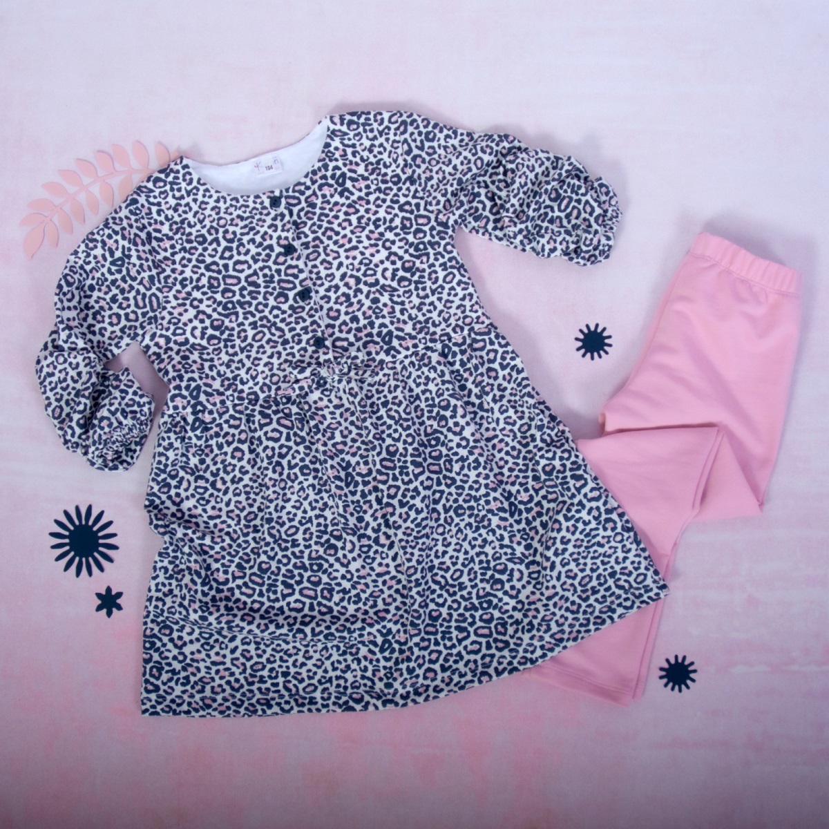 K-Baby 2 dielna sada – šaty + legíny, Gepardík, veľ. 110
