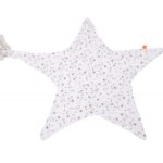Jemná textilná hračka s odnímateľným hryzátkom v tvare hviezdičky, vyrobená z prírodného kaučuku.